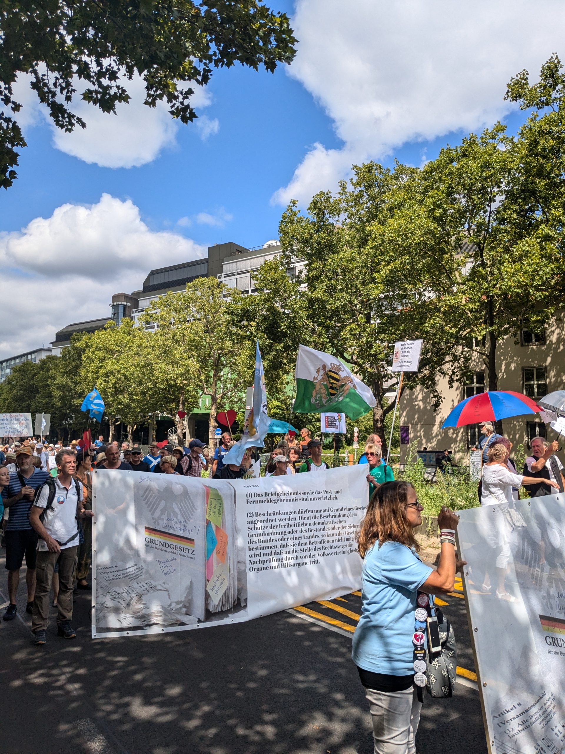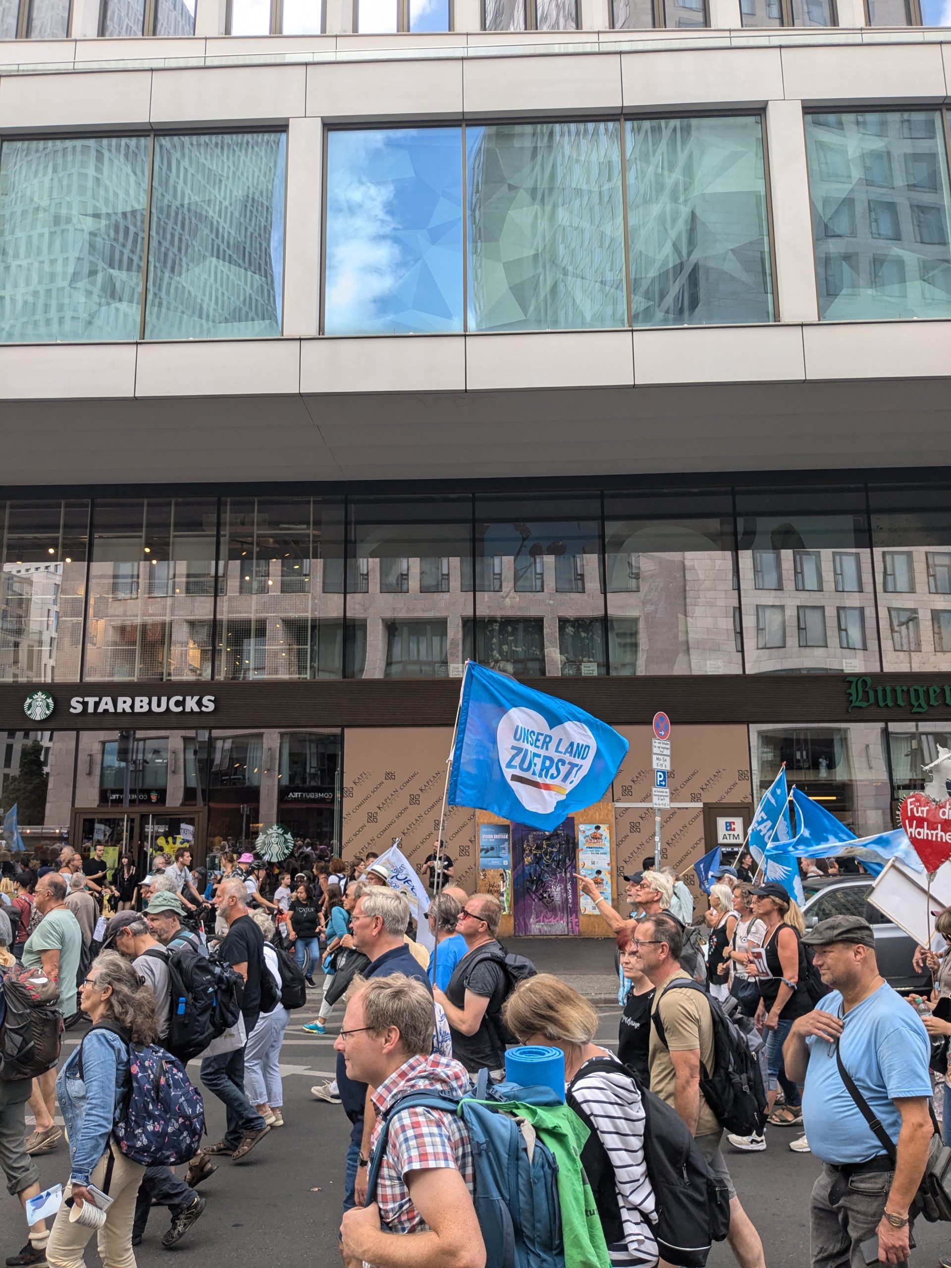 „Seit den zahlenmäßig größten verschwörungsideologischen Versammlungen zur Coronapandemie im August 2020, haben sich die jährlich wiederholten sogenannten Querdenken-Proteste als wichtigster Termin der Szene etabliert. Auch in diesem Jahr gibt es für das erste Augustwochenende eine Mobilisierung nach Berlin, die jedoch anders als 2024 von der lokalen verschwörungsideologischen Szene organisiert wird. Die in Berlin aktiven Gruppierungen sind trotz inhaltlicher und organisatorischer Annäherung an die AfD nur noch selten in der Lage, überregionale Mobilisierungserfolge zu erzielen. Gleichwohl gibt es auf lokaler Ebene weiterhin Versuche neue Themen und Bündnispartnerschaften zu suchen, um auf der Straße aktiv zu bleiben. Diese Entwicklung zeigt sich auch in den für Samstag angekündigten Redner_innen, die u.a. aus friedenspolitischen oder antiisraelischen Zusammenhängen kommen.