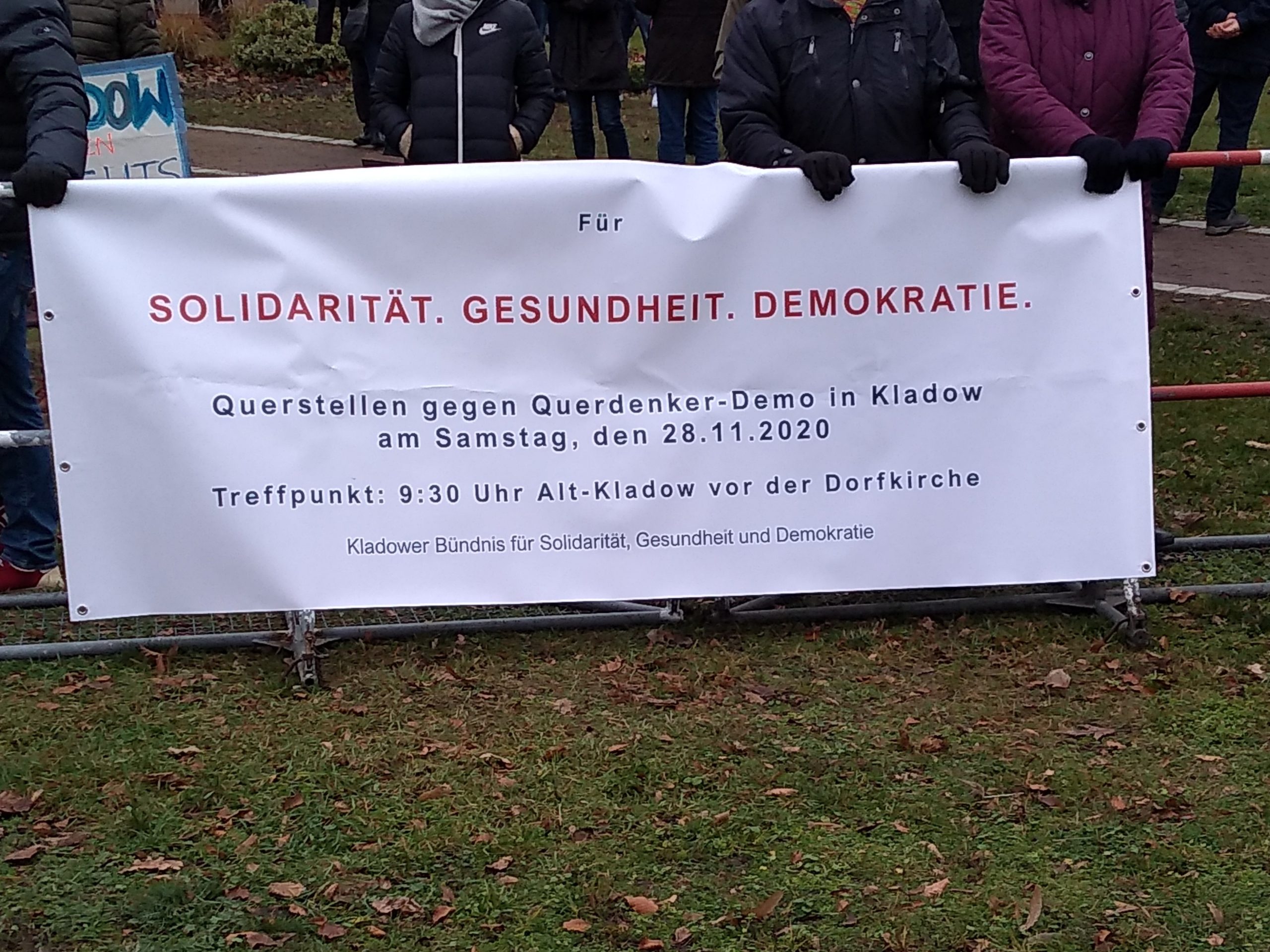 In Pankow gab es Mitte November breite Gegenproteste gegen einen verschwörungsideologischen Aufmarsch mit unzähligen Positionierungen aus Wohnungen und mehreren Gegenprotestkundgebungen. In Kladow einem Ortsteil von Spandau protestierten Ende November mehrere hundert Anwohner_innen gegen eine verschwörungsideologische Kundgebung von ca. 15 Personen.