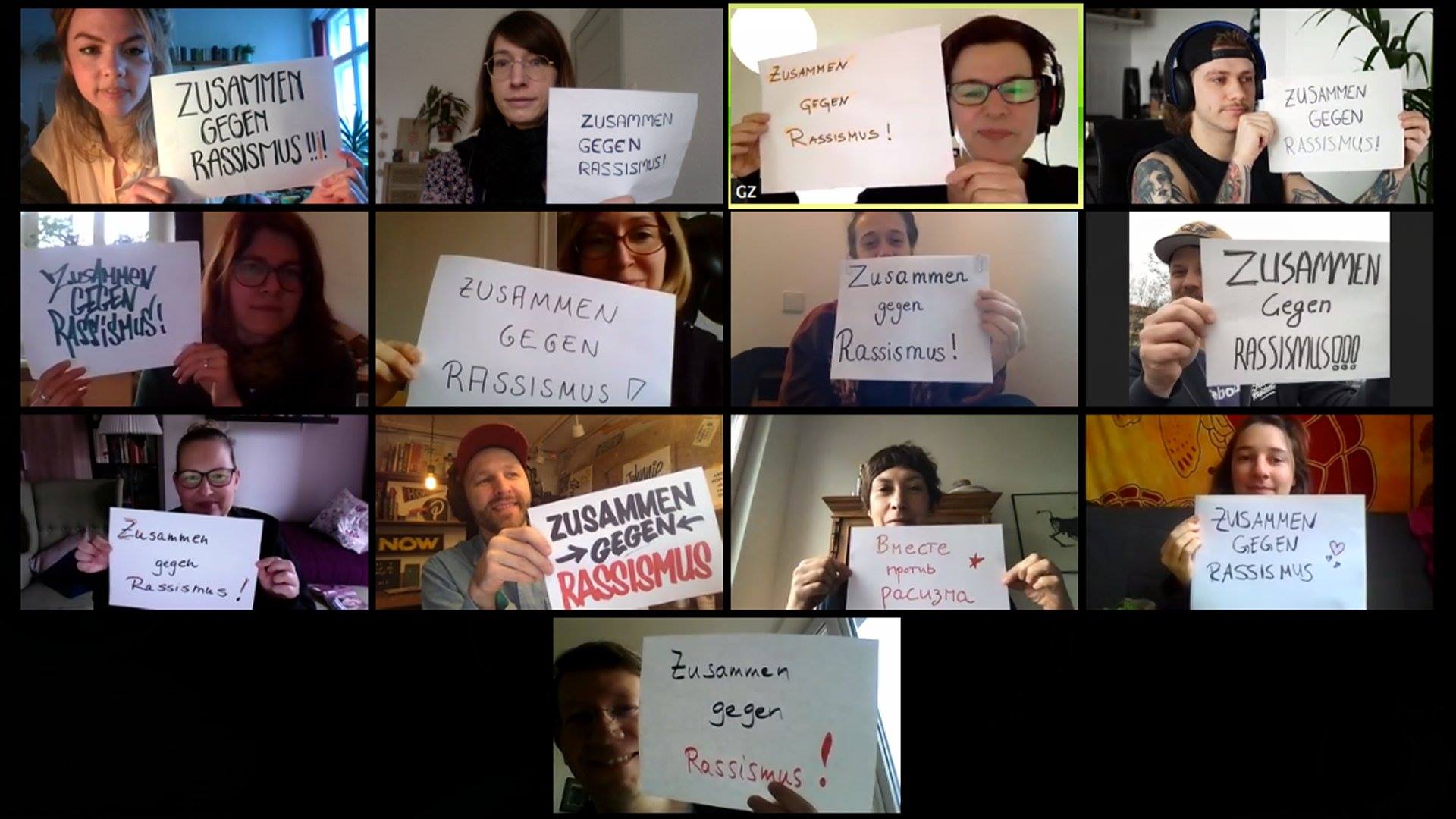 Um dem Protest und der Positionierung trotz Versammlungsverbot Sichtbarkeit zu verschaffen, entwickelte Berlin gegen Nazis eine Aktionsidee und trug diese Idee an alle vernetzten Initiativen und Bündnisse heran. Das Bündnis Zusammen gegen Rassismus Wedding & Moabit rief sodann unter dem Hashtag #ZUSAMMENGEGENRASSISMUS dazu auf, sich den je eigenen Möglichkeiten entsprechend zu positionieren und die Positionierung am Tag gegen Rassismus online, in den Sozialen Medien und auf den Webseiten öffentlich zu machen.