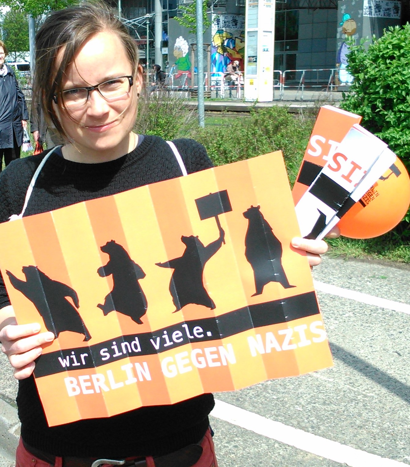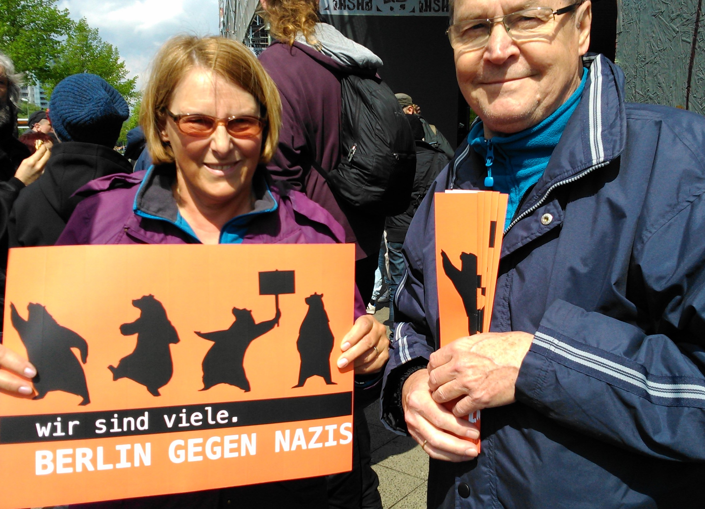 Mit dem Fest „Bunte Platte“ wolle man ein „ein Zeichen setzen für eine weltoffene Gesellschaft und ein friedliches, demokratisches Miteinander“, so das Lichtenberger Bündnis. Dazu gab es auf zahlreichen Ständen passendes Informationsmaterial – u.a. von Berlin gegen Nazis.
