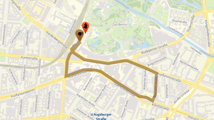 Hardenbergplatz – Hardenbergstraße – Budapester Straße – Breidscheidtplatz – Kurfürstenstraße – Bayreuther Straße – Wittenbergplatz – Tauentzienstraße – Kurfürstendamm – Joachimsthaler Straße – Hardenbergstraße – Hardenbergplatz.