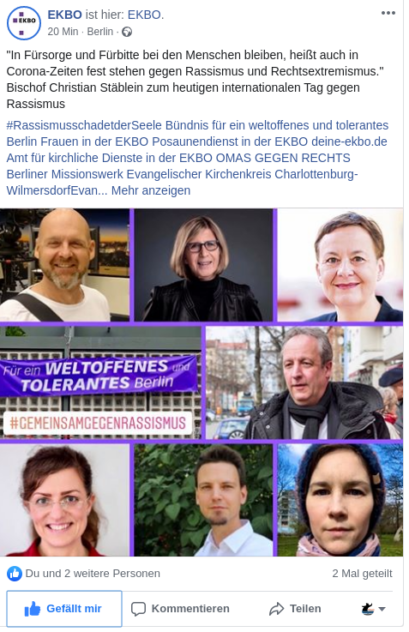 Bündnis für ein weltoffenes un tolerantes Berlin’de başlatılmış olan bu Online-Aksiyon’un çağrısına katildi. İttifak üyeleri kendileri tarafından özel olarak oluşturulmuş olan Share-Pics’lere ek olarak gene kendilerine ait olan kelime ve resim ifadeleriyle bu kampanyada yer aldılar. Diğer kuruluşların yani sıra bu kampanyaya katılan bazı ittifak üyeleri Gartenfreunde, Landessportbund, DGB, AWO, EKBO, TBB, Gesicht Zeigen!, House of One ve Erzbistum Berlin.